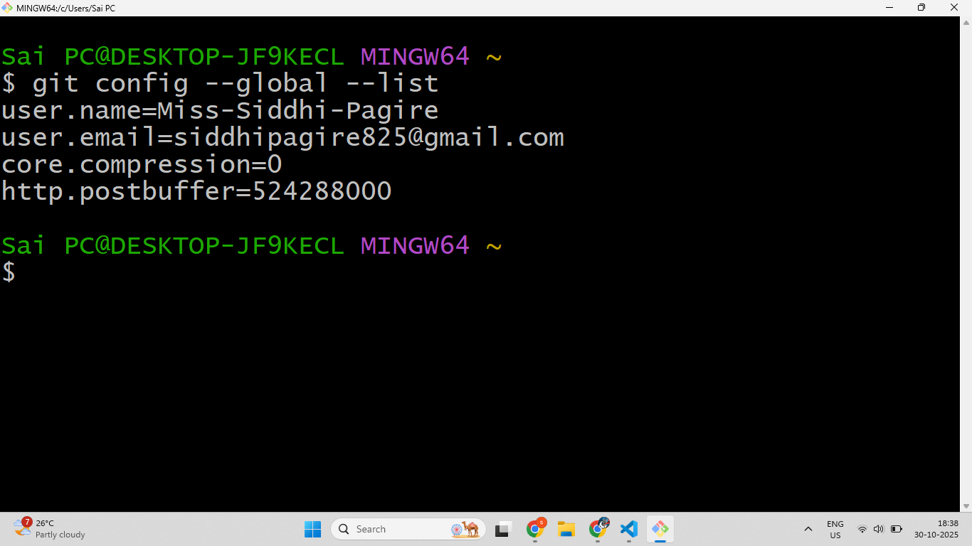 β If you see your username and email, your Git is now connected to your GitHub account! π